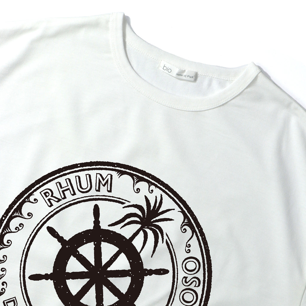 このTシャツはフロント部分にペナシュール房総が製造するラム酒のボトルデザインにも採⽤されているロゴを配置し、背⾯には限定コラボレーションのクレジットをプリントしています。 ⽣地に使⽤されている素材PlaX™は、植物由来かつ⽣分解性を有しており、既存の化学合成繊維であるポリエステルに⽐べ、⽷製造時や焼却処分時にCO2排出を削減することができる環境配慮型の新素材です。TシャツはPlaX™100%の⽣地を採⽤し、ハリのある質感とゆとりを持ったオーバーサイズのシルエットに仕上げています。