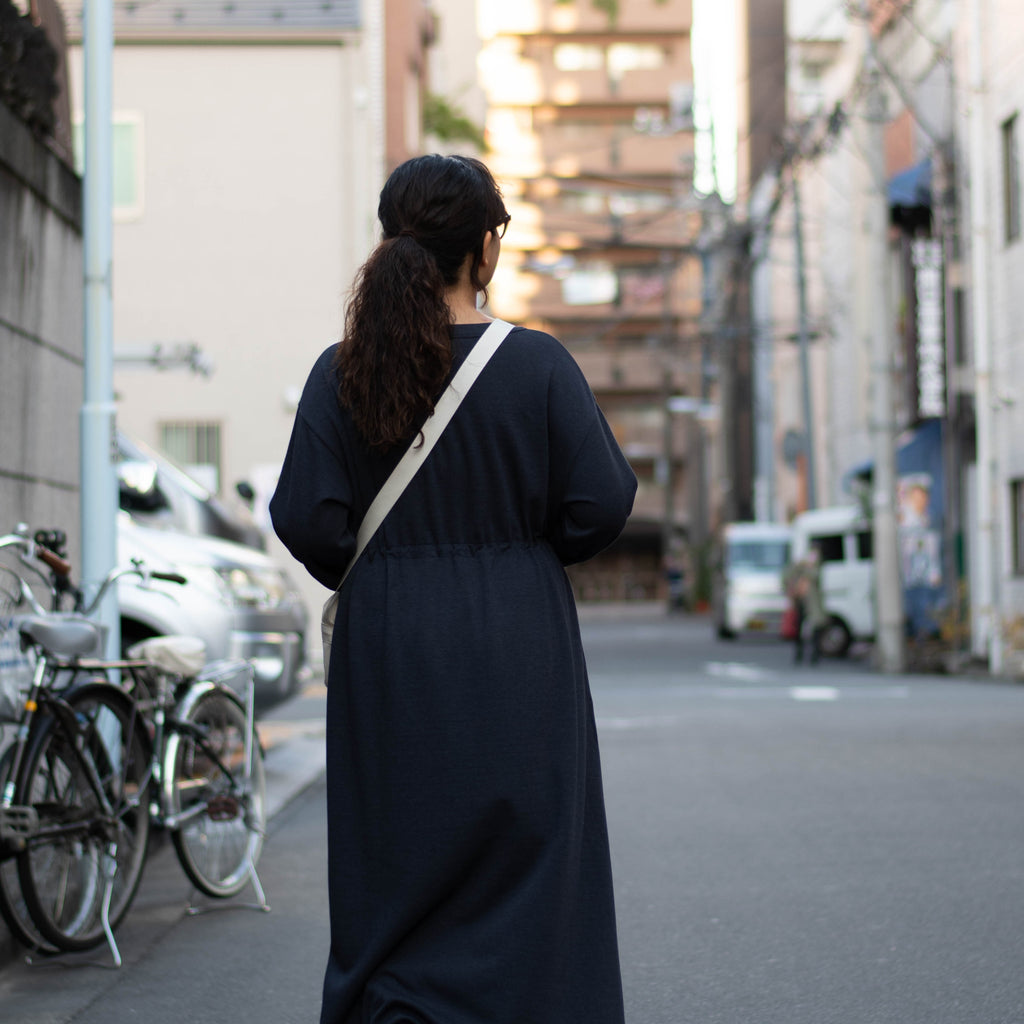 独自開発のポリ乳酸繊維PlaX™(プラックス)を使用した、ゆったりとしたシルエットが特徴のロングワンピース。
